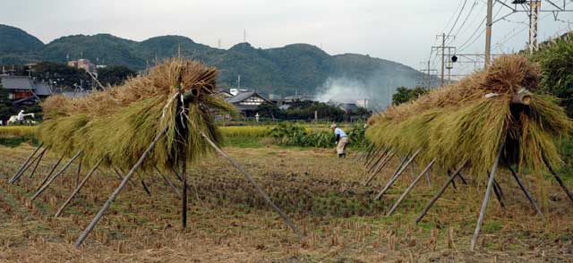 役場からの帰り道、第三小学校の学習田に寄って見ました。今朝は審議会の傍聴とかち合って、子どもたちの稲刈りを見学することが出来ませんでした。綺麗に刈り取られた田んぼでは、ずっとサポートをしてくださっていた農家の方が、まだハサ(稲架)にかけた稲を手直しされていました。本当にお疲れさまです。まだこれから脱穀や精米の作業が続きますが、どうぞよろしくお願いたします。