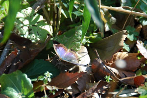 ムラサキシジミが越冬していた場所の枯葉はことごとく無くなっていて、それ以上探すことができないのです。が、秋に飛んでいた場所にきっと居るはず、と思ってそのあたりを探索しながら待ちました。