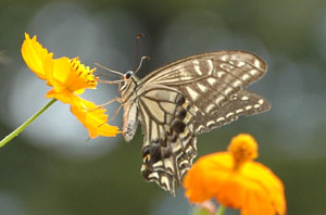 クロアゲハ、ナミアゲハ、アオスジアゲハもなかなか花に止まってくれません。 |