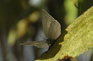 ムラサキシジミを探そうと思って、シロダモの木に戻ると、先ほどのウラギンシジミも来ていました。