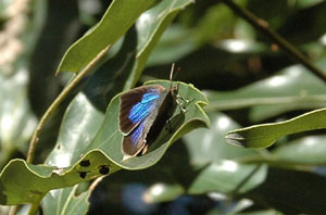 ムラサキシジミは同時に3頭見かけました。ヤツデの葉やシロダモの葉などがお気に入りのようでした。