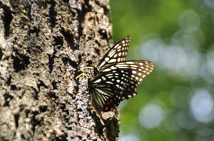 クロアゲハは森の中で一瞬止まってくれました。