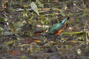 16日になんとか飛び込む姿と魚をくわえた姿が撮れましたが、魚が小さいのとヘドロまみれの草の上では絵になりません。 |
