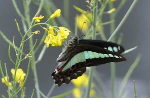 ナミアゲハ♀が吸蜜していると、♂が2頭からんできて、空高く舞い上がりました。