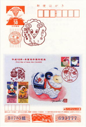 昨年のように自分で押印に出向けるところには羊の風景印はなく、また小型印も使用されないので、今年は泉大津局さんと豊平局さんに郵頼しました。