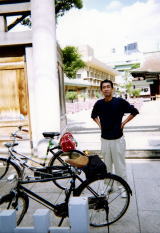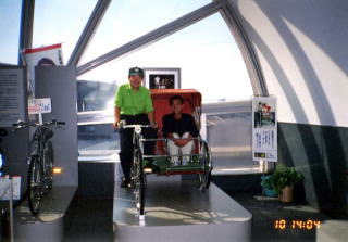 シンガポールの輪タクに私とまだまださん二人乗って、お客さんのおばちゃんにシャッターを押してもらいました。