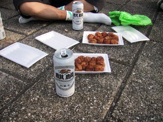 寝屋川の町も軒下をくぐりぬけ いつものたこ焼とビールで淀川河川敷で締めくくる