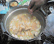 そのあとコッフェルに銀杏を入れて、煎ることにした。はじけると結構音がするどころか蓋をも飛ばす。その勢いにびっくりするが、中の銀杏はおいしい。