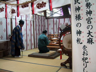 全員そろったところで、隣の三田天満宮へ毎年恒例だというお払いに向かった。メンバーの中に今年還暦の人が3人いたので、その人たちは特別にお払いをしてもらったのだが、その時に宮司さんがそれぞれの人の両肩に向けて小さい刀を振りかざし、ニシッとも、ヌシッとも、どちらともつかない奇声を発したのが妙におかしくなり、笑いをこらえるの