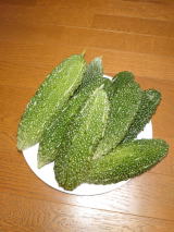 なおやんは、しば漬けを作ろうと葉っぱから軸をとりました。ゴーヤは炒めて美味しくたべました。