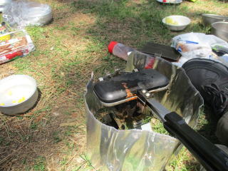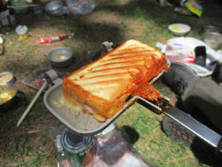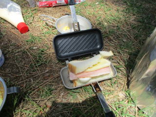 ホットサンドメーカーを持参してきている。