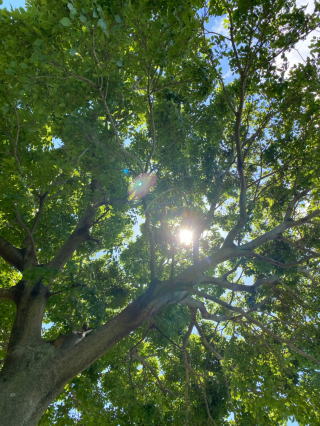 木陰は気持ちいいが、ひなたは暑い。移動する木陰を追いかけて、涼を求めて移動する。