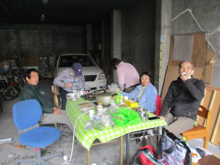 大泉緑地で鍋をする予定だったけれど、予定を変更してまだまださんのガレージにて行うことになりました。