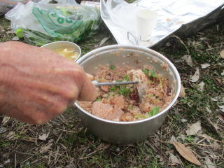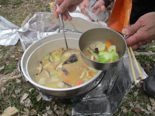 タコ飯は、アルミのコッフェルで量が心配されたが「やってみよう」。