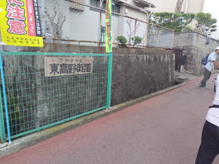 迂回した道が、東高野街道の看板。まだまださんと歩いてみようかと話あっている道にでくわす。