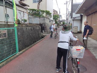 階段おりたら自転車で来た、そこねぇさん。これまた地下鉄の門真南から自転車のまだまださん。