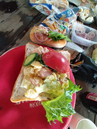 サンドイッチだから用意は早い、せいぜいゆで卵の皮をむいて切るぐらい。