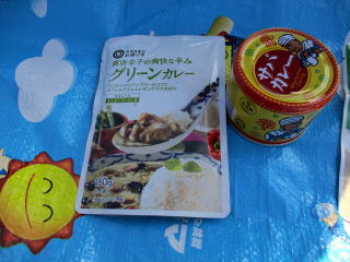 あっちゃんは、サバカレー缶、なおやんはグリーンカレー