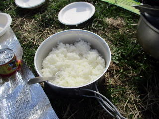 さっそく、洗い米をだしてもらう、三合の米。コッフェルで炊く。