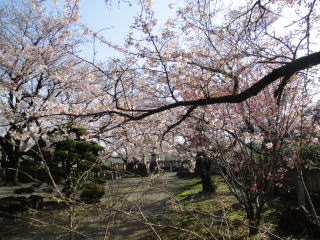 途中の村山神社で、桜がきれいでひと休み。