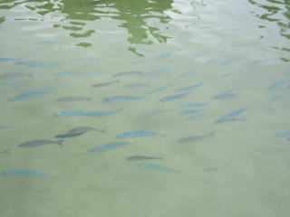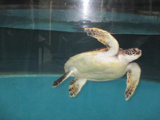 プールにもウミガメ、サバが泳いでいる。