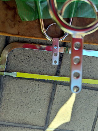 泥除けの足が長いのでカナノコで切って、エポキシの接着剤で止める。