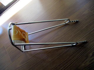 次は荷台ですが、そのためには泥除けの止め金具の穴を荷台の固定部分と共用にする必要がある。付いている泥除けの固定ネジは見た目はいいが、これではダメ。