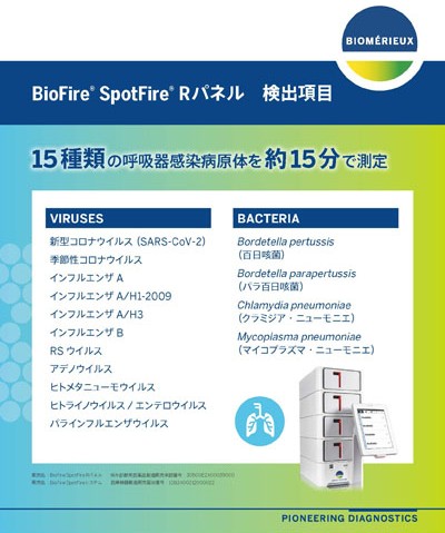 BioFire SpotFire Rパネルを用いて院内で15種類の呼吸器病原体のPCR検査を実施しています。従来は複数回の検査が必要で、患者様の身体的負担が大きかった検査が、1回の検体採取で完了するようになりました。