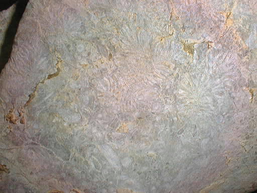 写真1の拡大です。小さな鎖サンゴの化石がたくさん集まっています。
