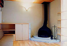1階には、近所に住むご両親が泊まるための和室と、暖炉のある大人のためのリビングルームが、