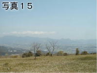 西側(写真14)には,筑豊の象徴「忠隈のボタ山」や子ども達が通う飯塚東小学校もよ〜く見えました。 東側(写真15)には,香春岳・牛斬山・福智山を含めた田川の街並みを楽しむことができます。 広〜い草地で,壮大な風景を眺めながらの昼食は最高でした。(写真16) |