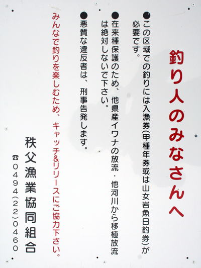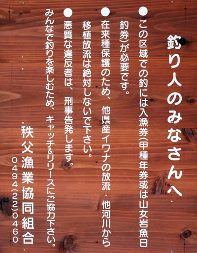 2006年度に設置した、在来の秩父イワナを守るための看板です。