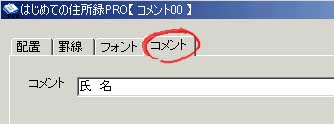 コメント00-39を選択し、「項目設定」で設定画面が表示され、「コメント」のタブを選択すると