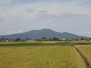 午前中は弥彦山の上を少し厚い雲がおおっていました。