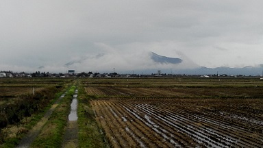 雪雲におおわれた弥彦山は全く姿を見ることができませんでした。