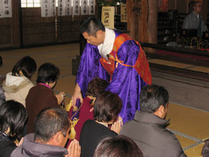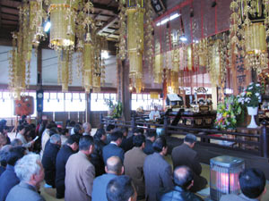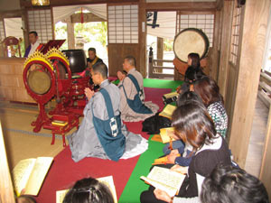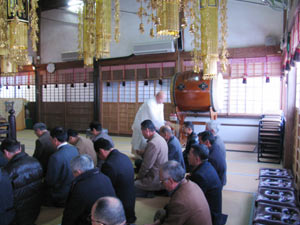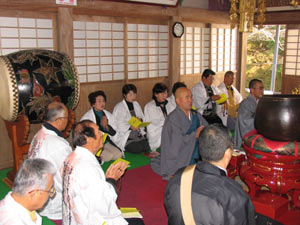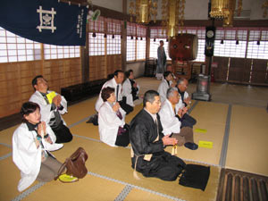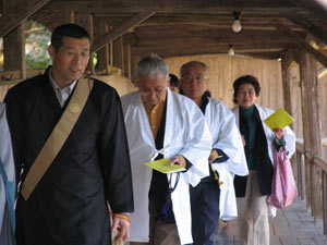 御真骨堂渡り廊下を歩き、御堂ではお経本を広げて、修行僧と共に読経される感心な皆様、御住職の田中上人