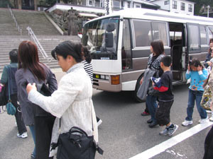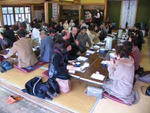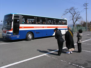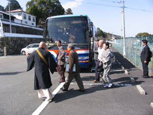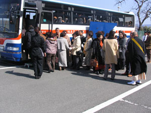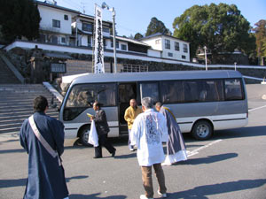 桜が満開のこの日、マイクロバスで来られた若い方の団体でした。橘会というお寺の組織だそうです。