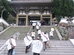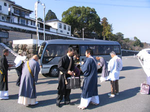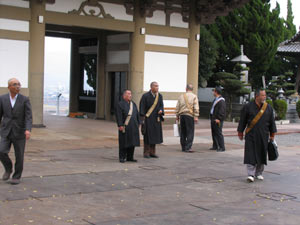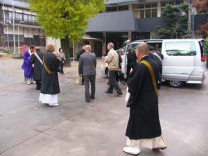 御真骨堂から大本堂へ移動 記念撮影をされるご一行様