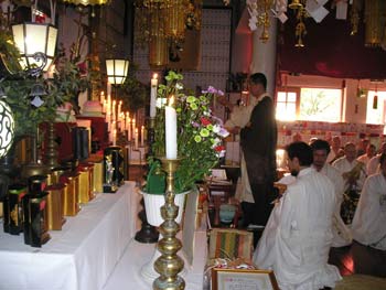 本年の守護神祭も多くのご参詣を頂きありがとうございました。私達を守って下さる永遠大明王は、必ず質問への答えを出して下さいます。中東に於ける戦争は難しい問題を掲げ、私達仏教徒にとって、殊に私自身の宗教者としてのあり方を考えさせられています。それは、日本人としての誇りや文化、そして佛教をDNAとして保ち続ける生き方を、何を持って今、証明出来るかという悲しみです。只今、その答えを頂きました。そうです!こうして弔いや祈りをする中にあって、そこには礼儀や体裁また道徳をまず先頭に重んじ、他人をも心から敬う英雄信仰の存在もあり、それを最重要視する我が国の価値観の事です。永遠大明王は本佛寺の守護神です。しかし御釈迦様そして日蓮聖人を打ち消すのではありません。そこに釈尊の法華経、日蓮聖人のお題目を中心として永遠様への額ずきが完成するのです。すなわち、日本人は元来闘争を好まず、わざと一極に持っていくことで闘争心理をかき立てただけであって、こうして素直に神に礼拝することが出来る民族なのです。勿論それが平等大慧の法華経すなわち佛教が背景にあるからなのです。今日頂いた答えとは、「生きていられる」という観点にたった時の物事に対する判断ですね。仮に米国が日本を占領したときに復興させた経緯をイラクにもと考えるならば、それは大きな間違いでしょう。イスラムやキリストといった宗教とは全く違う価値観の仏教国日本だったからこそ今日に至ったという誇りを知らないからです。このような大祭にあたり、私達は今後も世界の和平を求めていきましょう。佛国土が建設されれば、こんなに幸せですよ!と。軍事的に守ってくれる米国には感謝してますが、日本人は別の路線、即ち平和への本線を歩いているという証を示してまいりましょう。本日は好天に恵まれ御堂に入れないほどの御参拝を賜り、本当にありがとうございました!