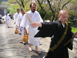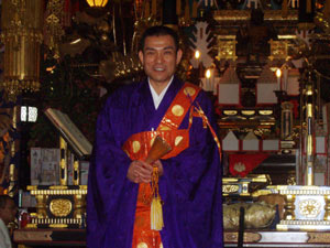 - さて、これからこのお話を永遠様と仏教の関係について掘り下げてみます。例えば、キリスト教やユダヤ或いはイスラムには永遠様は祀られていますか?祀られていませんしありえませんよね。まあ日本の神だからってことは別にしまして、シークやヒンズーも一つの神のみに「祈り」を捧げます。これらの宗教はこの「祈り」一辺のみの信仰だからです。絶対神は一神教の典型ですね。懸命に祈り続けます。これに反して仏教は多神です。多くの神様を信仰します。よく、イエス・ノーをはっきり言わない!日本人!と指摘されます。たしかにそうでしょう。でもこれは本当に悪い事なのでしょうか?以外に答えがはっきりしない事もあるし必要なんじゃないですか。イラク戦争は本当に終わったのでしょうか?今話題のテレビ局とIT業者の争いは白黒で終わるんでしょうか?中國と日本、韓国と日本は、白黒はっきり出来るんでしょうか?ちょうど中間にしておいた方がうまく行くことがむしろ多いのではないでしょうか。一神教の「祈り」の宗教ではその中間を探せないんです。ところが日本仏教は違うんです。悪神と善神がありますが、そのどちらも祀るんです。典型的なのが鬼子母神様ですね。鬼の角を外して田九と記して祀ることを許します。悪神の王様とでも申しましょうか大蛇も、祀ります。稲荷も八幡もすべて併せて祀ることが出来ます。今御開扉をされてお気づきの方も多いと存じますが、内陣の永遠様には両脇に別の神様が鎮座されていましたね。一方が悪神で一方が仲裁役の神様です。これを三諦勧請ともうしますが、どっちにもならないようにちゃんと座して中道を目指し、利益を頂くようになっておられるのです。「祈り」というのは一神では成就しません。そこから争いを招く事になってしまうからです。ですから最初申し上げた答えは、永遠様は仏教、即ち「戒・定・慧」の三学を持すお題目で完成するのです。懺悔して許すことが出来るのです。ちなみに戒は生活です。生きる基盤で、まず基礎があって、定である想いを静かに願う、心の言葉ですね。ここに謝りも含まれます。そしてそれを覚る智慧を(仏教思想)備えなければなりません。私達仏教徒が言う「祈り」とはこれを指します。ある程度は生活をしっかりさせ心を無にしてしかもその世界、ここでは永遠様ですが、それを知る智慧を持っての行為を指しているのです。食べるのもない、家もない衣服もない状態からでは利益は生じないのです。自己努力をしっかりやって行動を見せた時、その力を授かるのです。それは努力した人が破産してもOKですよ。頑張ったんですから。ただ遊んでばかりで、パチンコに勝ちますように!なんて願ってもそんなのには利益はありません。何れにしましても、御利益を証明しているのが、本日のこの日本晴れですよ。佛天の証しが、目の前にあります。殺虫剤を撒いたことを許して下さいましたよ(笑)。どうぞ、自信をもって信仰を続けてください。本日は、本当にありがとうございました。 (録音テープより)
