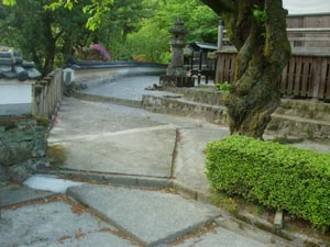 前回と同じく、段差がありコンクリートが剥がれた状態の参道