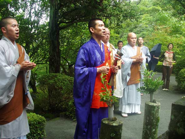大友宗麟とその一族家臣の墓にも経を唱え供養します