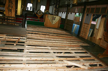 此度、大本堂200畳の拝殿の床下を補強しました。
