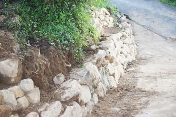 道を止める箇所には石垣をつきました。