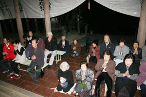 ようやく辿り着いた拝殿。励まし合って休憩した後、降誕会法要が始まります。