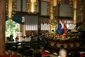 御前様の御導師にて法要厳修。お経のあと、全員がお焼香されます。毎年のことです。
