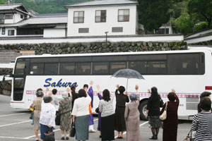 それぞれの車やバスで参詣され、励光閣に集合。手を洗い身を清めて大本堂に入られた宮城会。