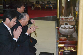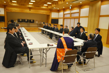 祈祷を受けられ、励光閣講堂で、今年の業績アップを誓いあう役員方でした。本佛寺では安全で健康を祈念し続けます。
