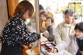 正月一番最初のご祈祷を受けられ、記念に護符を戴く皆様。