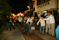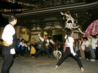 - さて、私達の国には言葉から読みとれる文化があります。「おえしき」とは会う時であります。私達の開祖日蓮聖人が亡くなり、鎌倉中の人々は悲しみました。会いたい会いたいと考え続けた民衆が創ったのが『御会式』で、日蓮聖人の命日に「こんなに幸せです」と賑やかに表現したお祭りをすれば会えると考えたのだそうです。理論ではなく真心からの発想です。これは経典中の「天人常充満」からも伺い知れる事柄で、「苦しいから助けてください。」と祈るところを、逆の行動に出た訳です。結局、今日のような幻想的風物詩となり、江戸庶民の宗教を超えたお祭りとして励行されこうして全国に広がりました。街の皆様にもご理解を頂き、警察等各機関へもお手を煩わせておりますが、『いのち』が持っている生命力を体現しながら、生きているからこそ出来る先祖への感謝表現を共に「格」別な想いで、お迎え賜れば幸甚です。